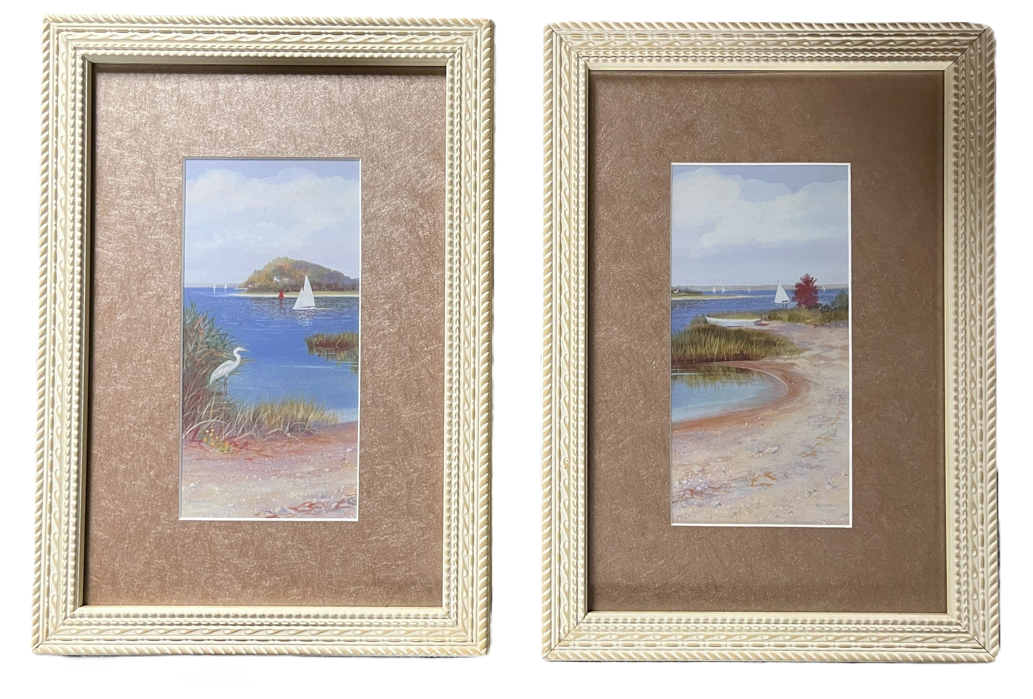 This framed set of nautical prints by Jacqueline Penney adds a touch of elegance to any room. The Standford white frame beautifully complements the intricate detailing of the prints. Display your love for the sea with these timeless pieces.
